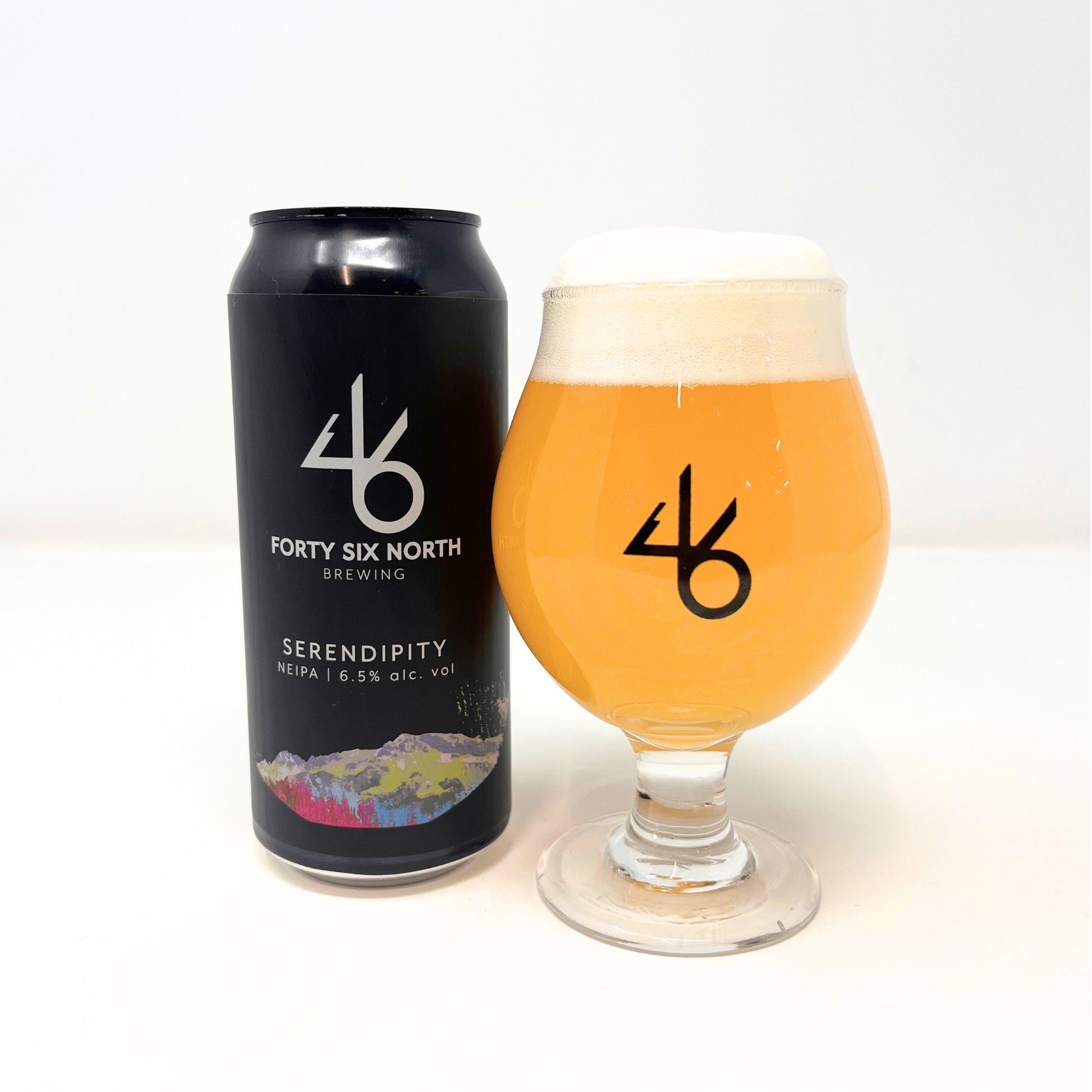 SERENDIPITY is a 6.5% NEIPA brewed exclusively with New Zealand–grown Cascade hops. It features bright citrus and subtle stone fruit character, a soft mouthfeel, and moderate bitterness at 30 IBUs.